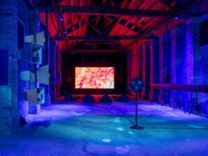According to the sound recordist and musician Chris Watson, who works with some scientists at the University of St Andrews, and collaborates with Casas, the concept of the different “temporal resolution” between human beings and non-humans is the node that they must keep exploring and developing in order to get an effective interspecies comprehension. Chris Watson says that “the classic example is that of a wren singing. That wren can produce 64 notes in an 8-second song phase. If you slow it down four times you can see and hear the individual notes”. Carlos Casas says that Bestiari, the installation, is a harmonious trans-sensorial station (haven) that “strives to induce a state of vibrational static diffusion and sensing”. A condition he coins ‘Physiological Static Perception’, PSP: an orchestrated experience to foster understanding and connection with the environment … Bestiari serves as a remedy for speciesism, an exhibition for comprehending the world as a symbiotic organism. It envisions a future where cross-species energy exchange achieves equilibrium, fostering unity between sentient and non-sentient matter. Bestiari’s mission extends to the acknowledgment that perception is not just passive observation but “an active force capable of shaping and manipulating the world”.