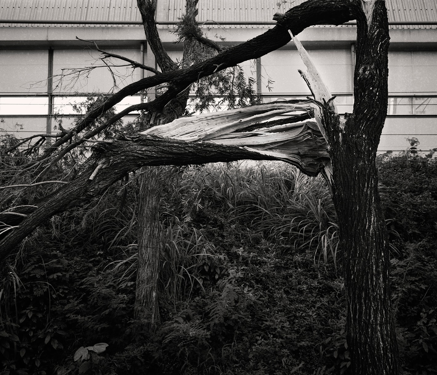 何兆南展出他最新的攝影系列《樹的留白》(2018)。作品記錄了2018年超級颱風山竹吹襲香港後的面貌。這個自1980年代以來最強的熱帶氣旋對香港造成廣泛破壞,成千上萬的樹木裂枝斷幹,橫斜歪倒日常所見的石屎森林面貌完全變形,景像撼動人心。藝術家捕捉了樹木在天災重創後的軀體和傷口, 記錄了在強大暴力下個體的脆弱,同時在拍攝的過程中,發現倒下的樹木很快被走,從中可見整個城市對回復正常狀態的迫切渴望。